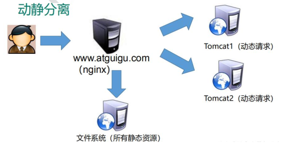 为了加快网站的解析速度,可以把动态页面和静态页面由不同的服务器来解析,加快解析速度,降低原来单个服务器的压力。