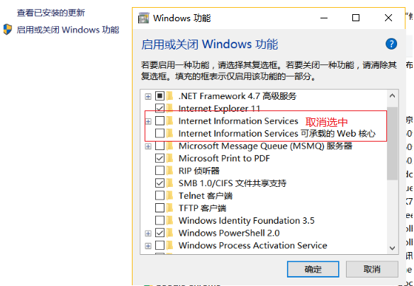 如果发现服务器启动不成功,很大原因是端口被占用了,因为windows默认会有一个iis服务器,只需要把iis服务器给禁用了即可